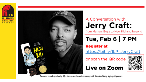 Learn about life, art, and telling your story with bestselling author, illustrator, and syndicated cartoonist, Jerry Craft. Join us for a conversation about his works and journey to success, including a drawing demo that will be fun for the whole family!